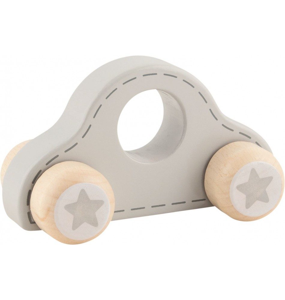 Cette voiture à pousser est un jouet pour les bébés dès 1 an / 12 mois. Il est un bon exercice de préhension… Saisir le jouet et le faire rouler sur le sol est un véritable exercice qui demande la concentration des tout-petits. Cette voiture en bois est fabriquée dans le respect stricte des normes propres à la sécurité des jeunes enfants.