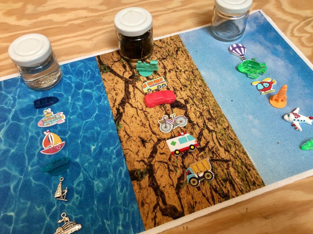 Moins courants mais possibles, envisagez des compartiments fermés avec des herbes odorantes ou des fruits secs. L’enfant peut les sentir sous surveillance pour éviter qu’il les porte à sa bouche.